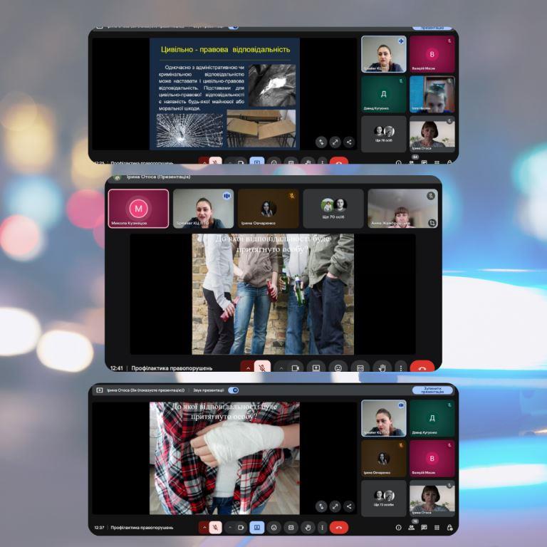 Під час зустрічі пані Наталя розповіла про основні норми законодавства, що регулюють відповідальність неповнолітніх за правопорушення, пояснила поняття «адміністративна» та «кримінальна» відповідальність, а також навела реальні приклади із практики. Особливу увагу приділили питанням безпечної поведінки підлітків у побуті, у мережі Інтернет, а також у громадських місцях. Підлітки активно долучалися до обговорення, ставили запитання та ділилися власними думками.